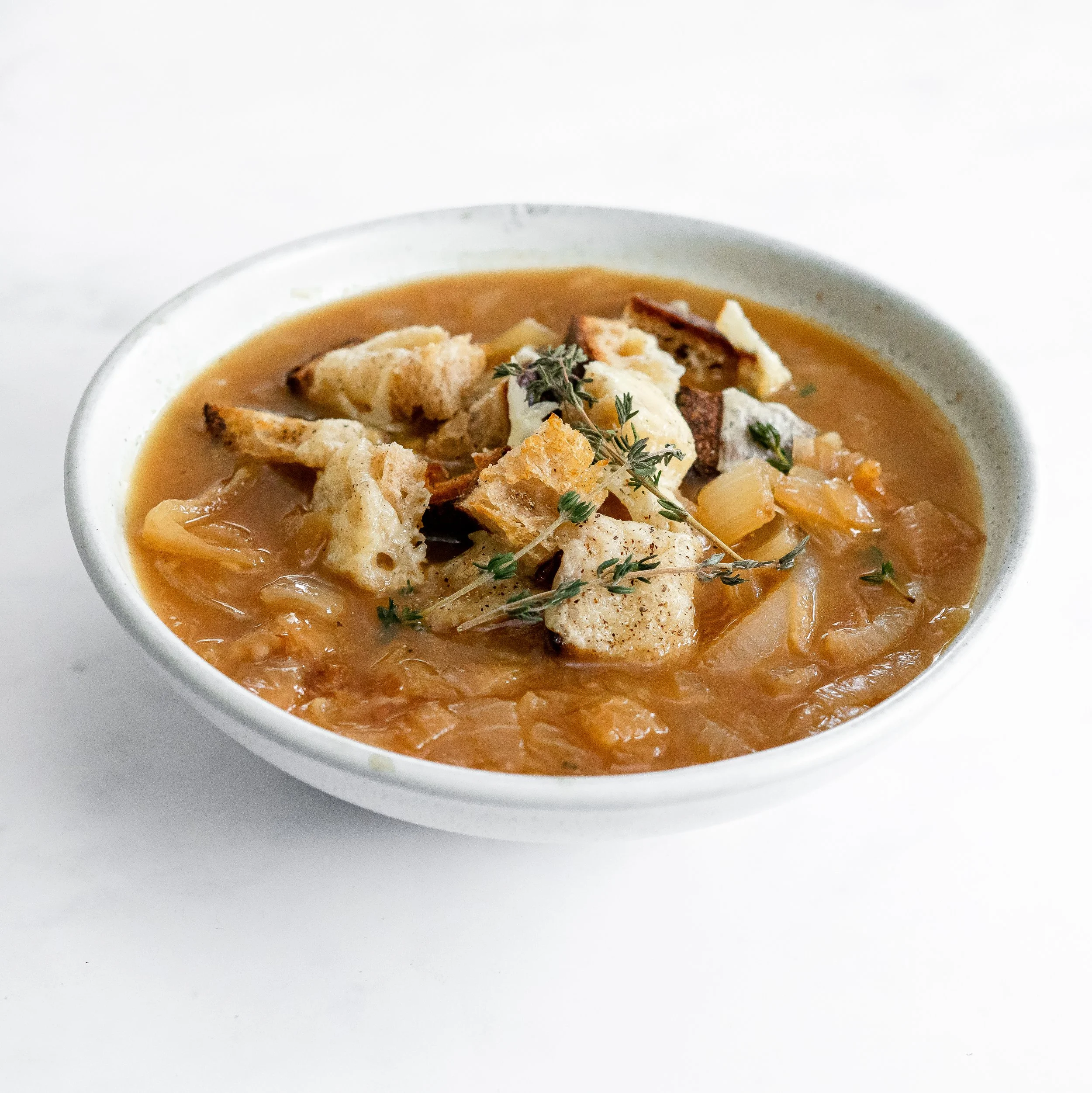 Heat butter in a pot over medium-low heat. Add onions, stirring occasionally until deep golden brown, about 20-30 minutes. Add flour and cook for an additional 2 minutes.