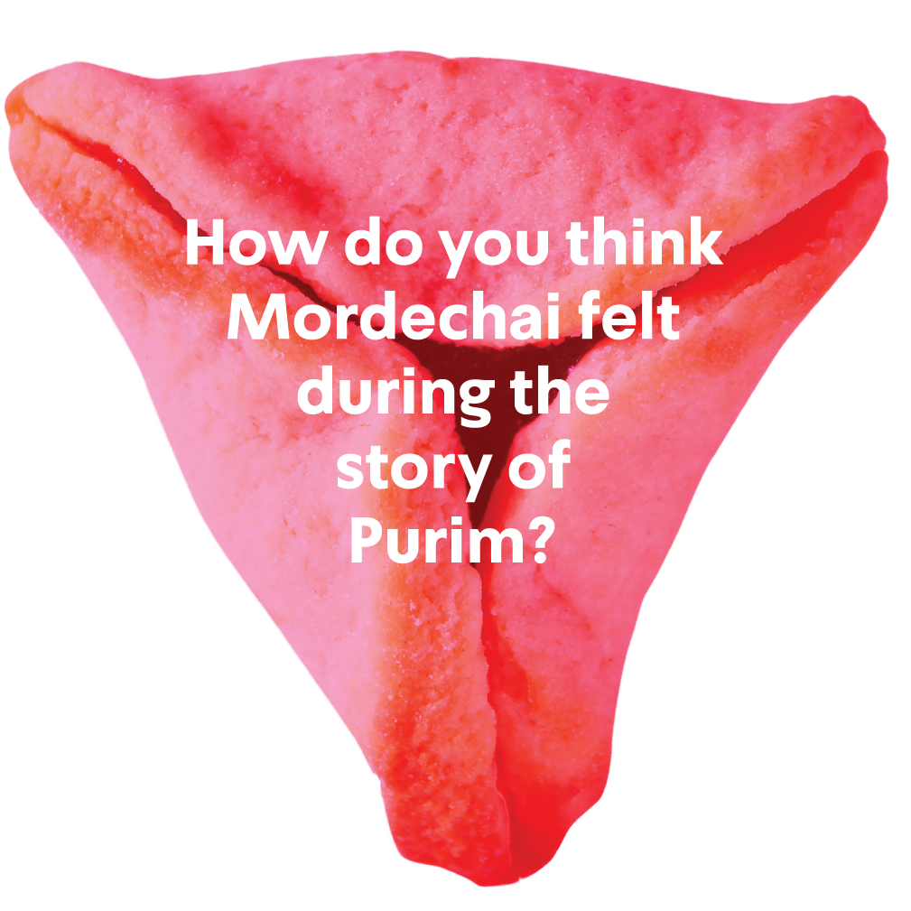We encourage you to read the story of Purim in Chapter 1 of your guide and think about the events from his perspective. Based on our reading, we think Mordechai experienced a wide range of emotions including a sense of responsibility, devotion, concern, and motivation.