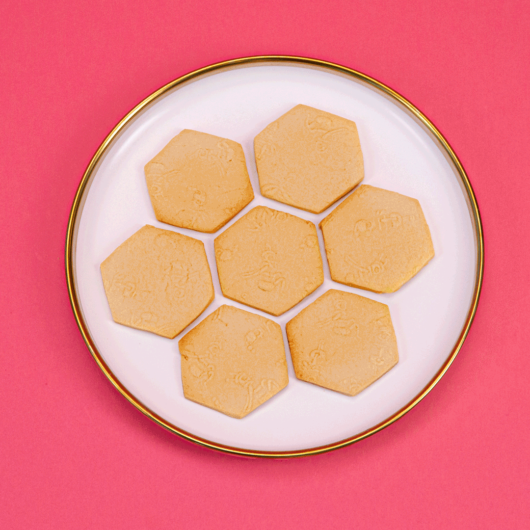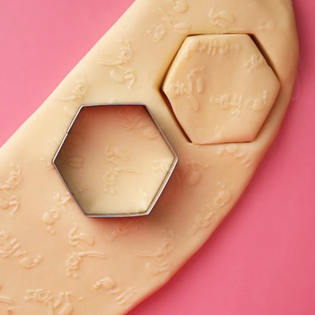 Use the Crazy Beez Cutter to create honeycomb shaped cookies from the embossed dough.